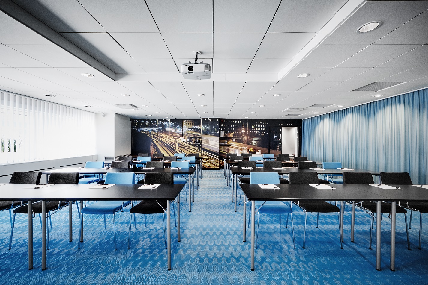 Här kan du välja mellan 20 olika mötesrum i olika storlekar. Alla våra lokaler är utrustade med den absolut senaste tekniken, noga utvald inredning och modern design. Här hittar ni till exempel vårt auditorium New York med 170 mycket bekväma fåtöljer, lokal Stockholm med designinfluenser från havet och gemytliga Genève, som lämpar sig perfekt för det lite mindre sällskapet. Vi erbjuder också upp till 700 kvm utställningsytor för till exempel exponering av montrar, utställningar och produktvisningar. Vi har två stora festvåningar för middagar, julfester och mingel – mitt i City.